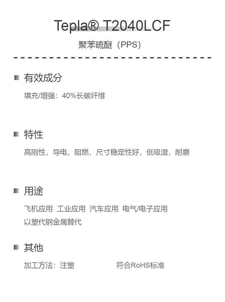 PPS+40%LCF(长碳纤维) 高强度 高刚性 耐磨 阻燃 聚苯硫醚